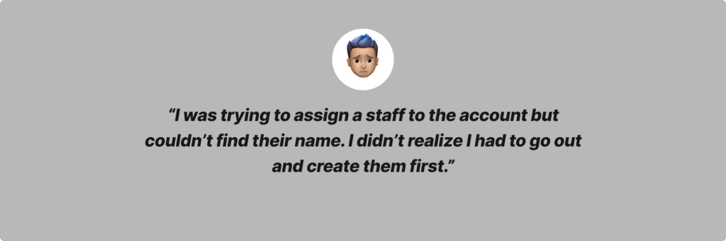 Through insights from user interviews and Mixpanel data, it became clear that merchants didn’t want to leave the account creation screen just to add a new location or staff member. They wanted to stay in context and complete everything in one go.