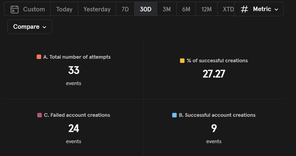 While reviewing the new event data for the virtual account creation flow, one metric immediately caught my attention: